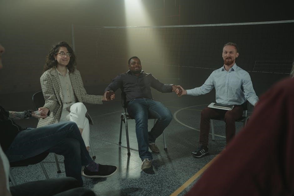 The PDF should also outline consequences for repeated disruptions, potentially including temporary or permanent removal from the group, ensuring adherence to best practices and maintaining a safe space for all members. Prior agreement on these procedures is vital.
